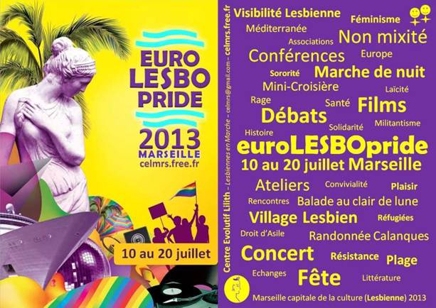 Le CEL et la Coordination Lesbienne en France organisent l’Eurolesbopride, sous le nom de la Fierté lesbienne européenne, Anita Freudiger et Isabelle Moulins, infatigables responsables du CEL (centre évolutif Lilith) à Marseille, expliquent le projet dans Têtu : le choix de la non-mixité « discrimination positive indispensable » dans un contexte où on parle si rarement de lesbophobie, la marche de nuit « pour se réapproprier l’espace public » ; elle évoquent aussi les difficultés rencontrées (un budget de 50 000 € réduit à 35 000 € par manque de subvention et du fait de l’incapacité de la Lesbian & Gay Parade de distribuer l’argent promis)