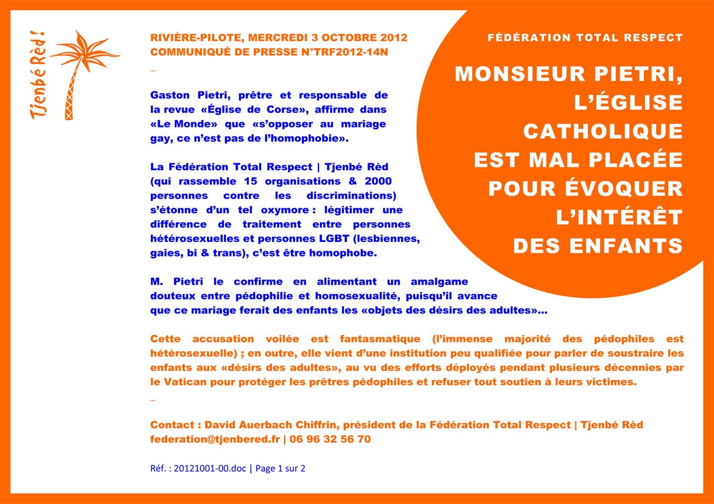« Je me définis d’abord comme citoyen français. C’est important pour moi car c’est une référence directe aux idéaux de la Révolution française, à commencer par le respect du principe d’égalité, évidemment central dans mon combat actuel. Je me définis ensuite comme militant car je ne supporte pas de m’investir dans une activité qui n’a pas de sens, pas d’utilité autre que l’accroissement du bénéfice de telle ou telle firme. Je suis président de l’association Tjenbé Rèd Prévention, à la fondation de laquelle j’ai pris part en 2007, et secrétaire général de l’association Total Respect – Tjenbé Rèd Fédération. »
